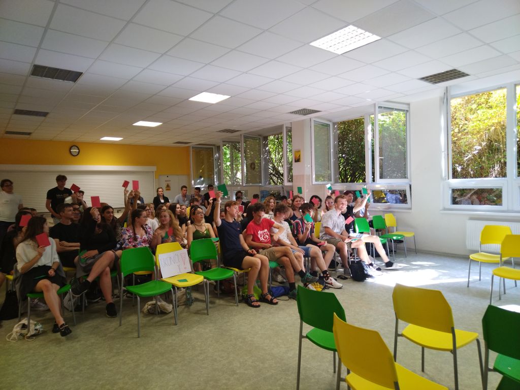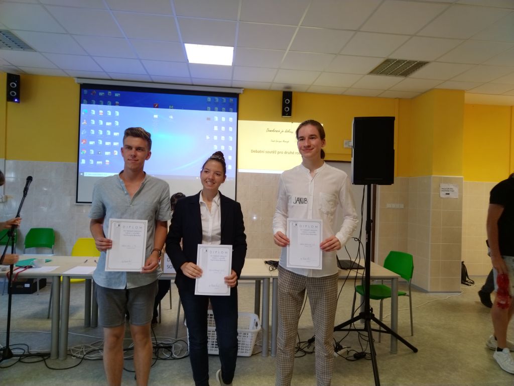 Konání tradiční debatní soutěže pro druhé ročníky se v letošním školním roce vzhledem k protiepidemickým opatřením odložilo až na konec školního roku - 27. 6. 2022. Týmy všech tří tříd v ročníku tvrdě bojovaly o výhru a jen pár bodů rozhodlo o konečném vítězi, kterým se stali studenti z třídy 2.A. Vylosovaná témata pro jednotlivé debaty se nesla od vlny politické – vstup Ukrajiny do EU ve zrychleném řízení, přes ochranu veřejného zdraví - povinné očkování proti Covid -19, až po studenty oblíbenou diskusi na téma návykových látek – marihuana je přestupní stanicí pro tvrdé drogy.