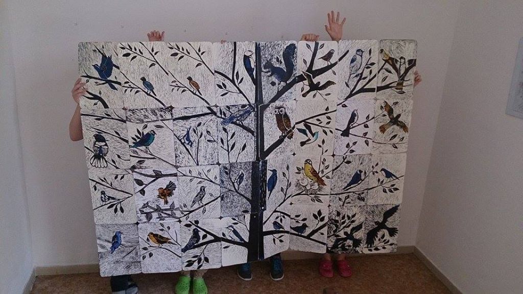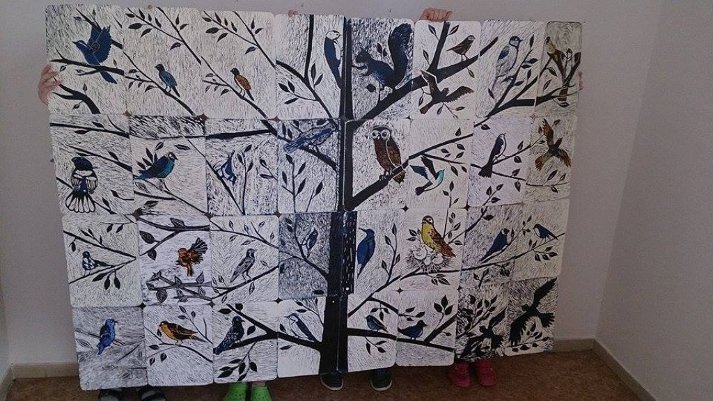 Dílo, které žáci vyryli pod vedením své učitelky Evy Juračkové, je možné obdivovat před vstupem do školní jídelny.