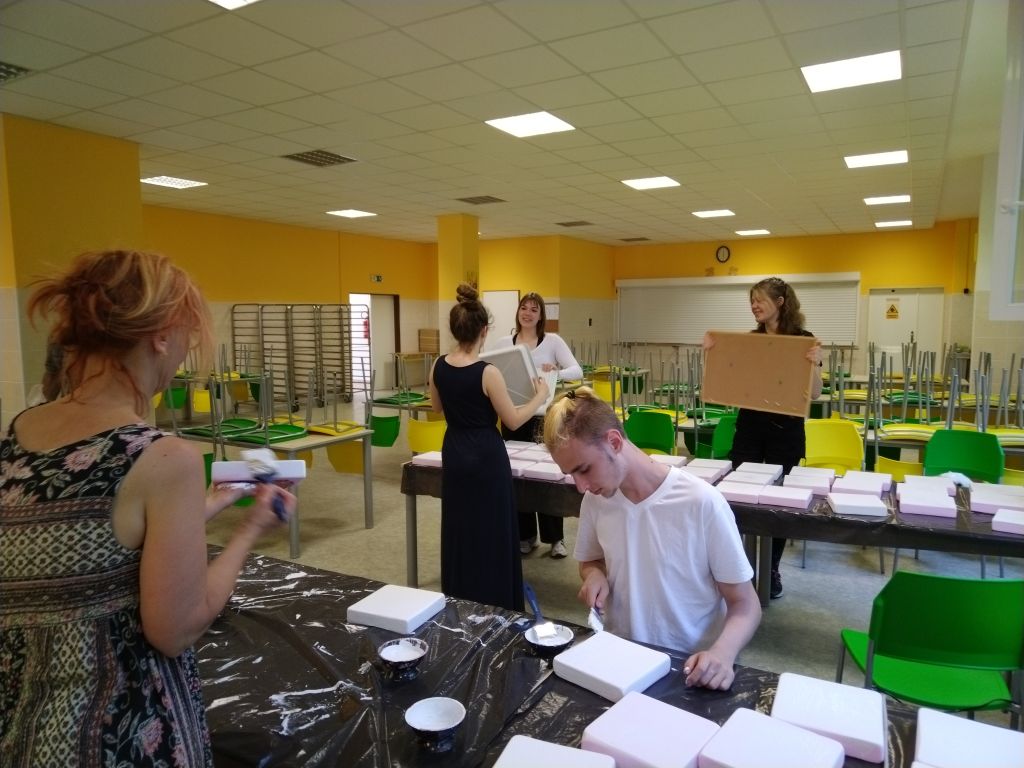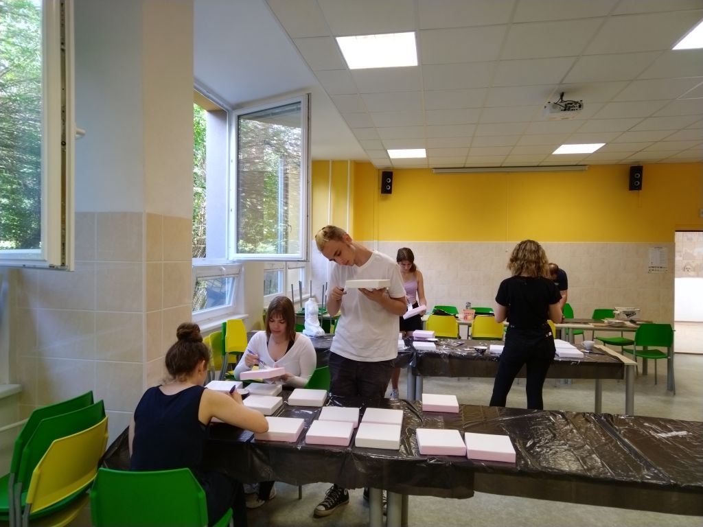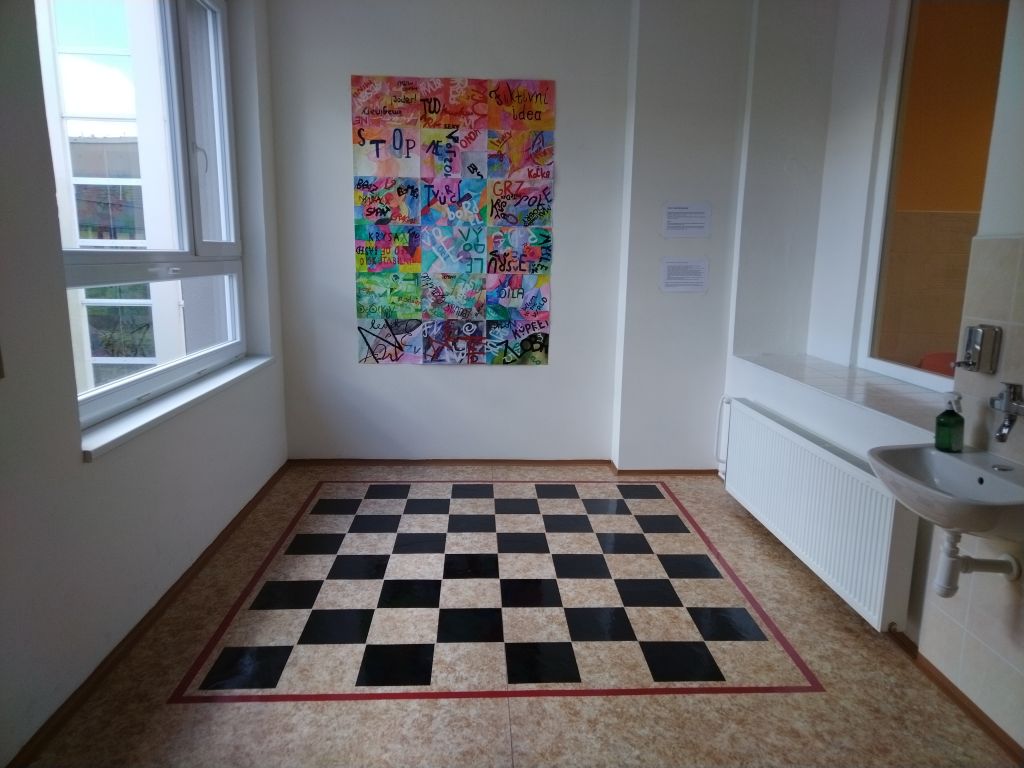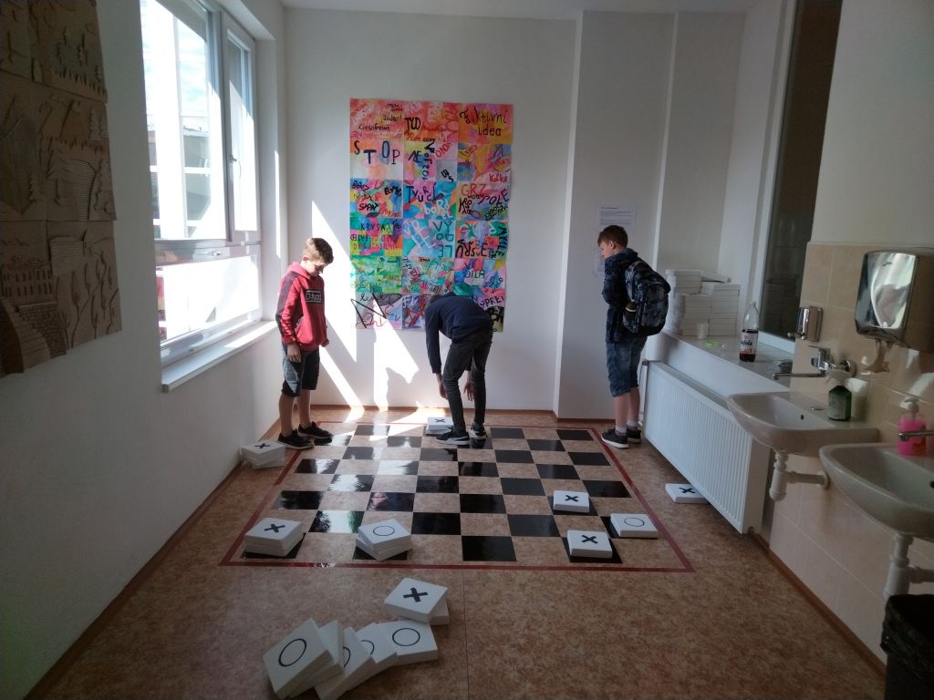 Herna vznikla během květnového sobotního workshopu pod vedením paní učitelky Evy Juračkové. S vytvářením hracích desek pomohli studenti ze Sexty a Kvinty, s lepením hrací plochy zkušení dobrovolníci – rodiče. Hrací plochu lze využít nejen na piškvorky, ale i na hru tzv. České dámy. Doufáme, že tento relaxační koutek se stane pro studenty oblíbeným. Přijďte si také zahrát, třeba během Dní otevřených dveří, které pravidelně pořádáme v listopadu a v lednu.