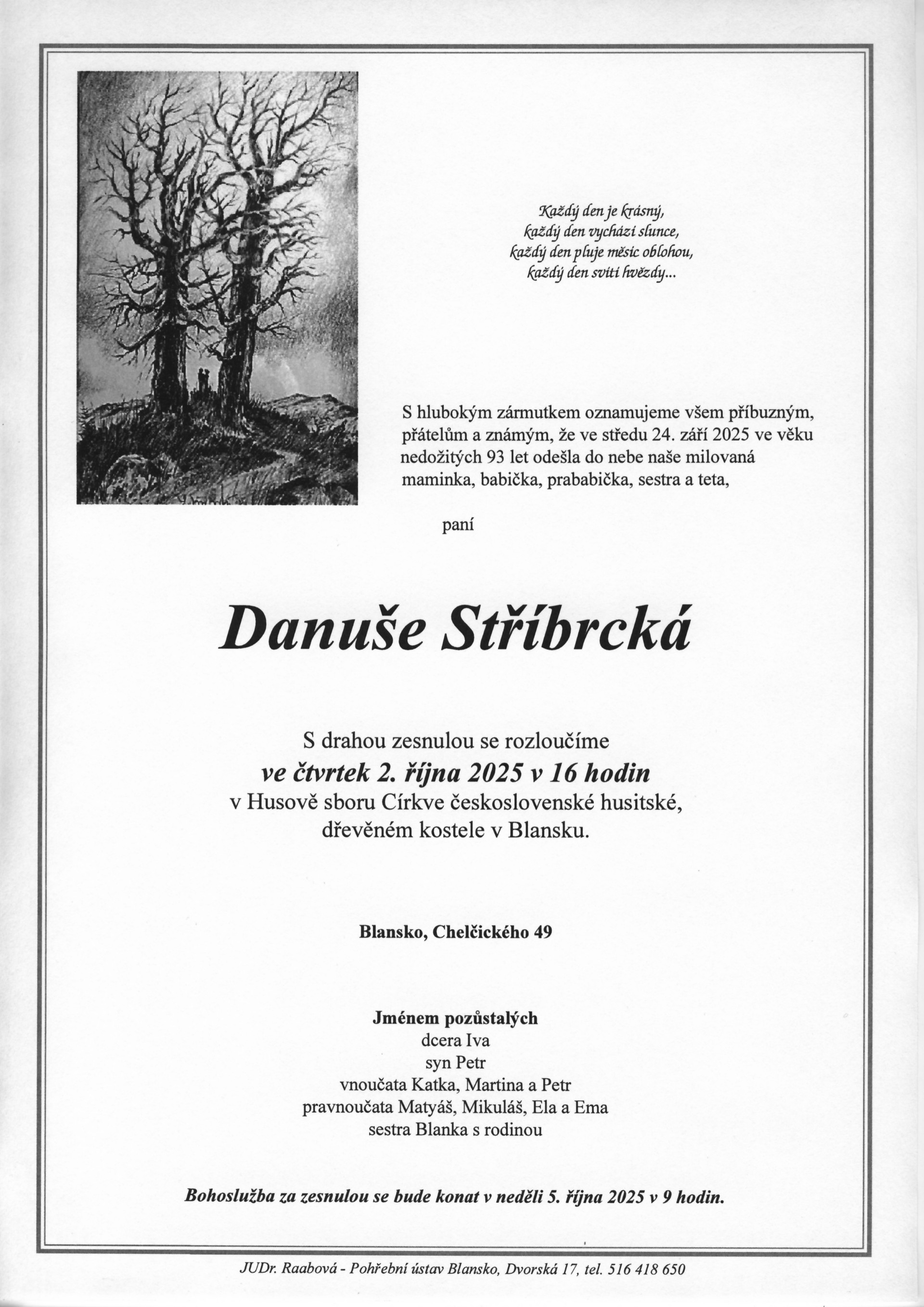 Ve věku nedožitých 93 let zemřela ve středu 24. září bývalá profesorka a dlouholetá členka pedagogického sboru Danuše Stříbrcká.