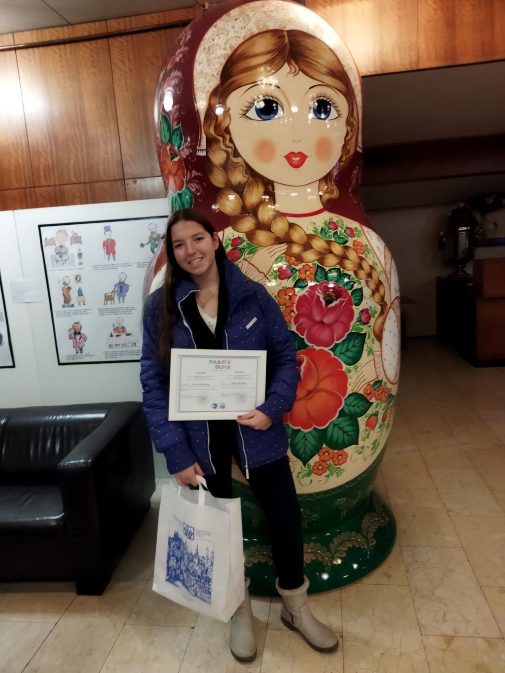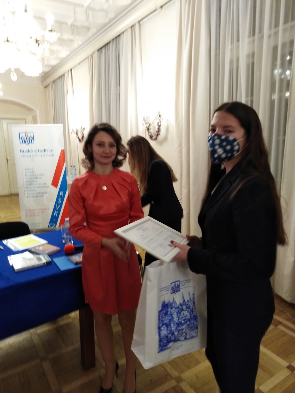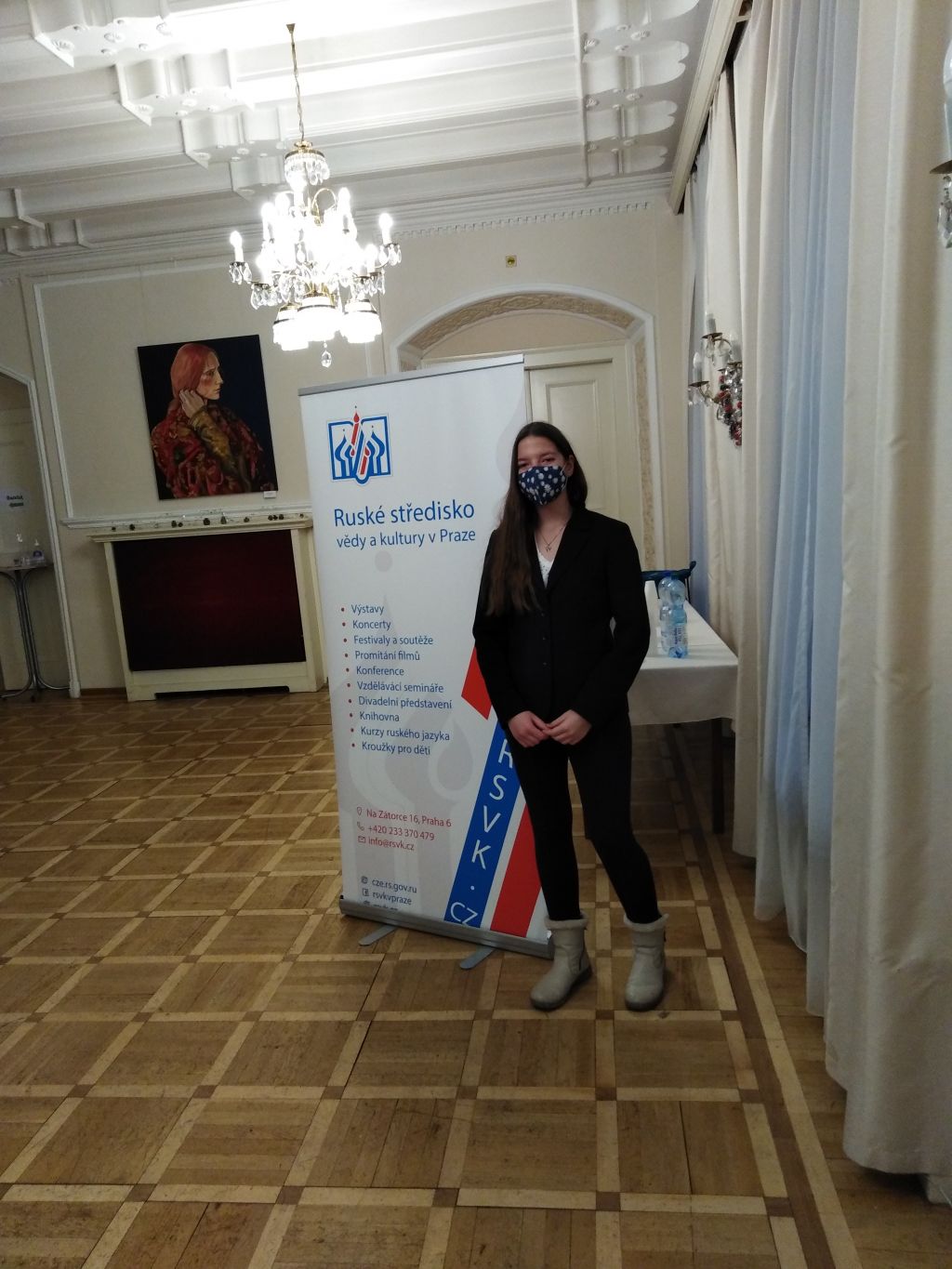 Je snadné vložit cizojazyčný text do překladače Google a zjistit, o čem se v něm píše. Ale něco úplně jiného je přeložit umělecký text tak, abyste vystihli jeho styl, atmosféru a vyvolali ve čtenářích ty správné emoce. A přesně o tohle v soutěži šlo. Umělecký překladatel musí mít cit pro jazyk a nesporně i literární nadání. To všechno Adélka ve svém překladu prokázala. Přeložila soutěžní text v kategorii 16-21 let, úryvek z nové knihy ruské spisovatelky Aljony Kašury „Útěk století“. Jako nejmladší ve své kategorii sice nestanula na pomyslných stupních vítězů, ale byla pozvána do Prahy na slavnostní vyhlášení výsledků. Porota ocenila její vypravěčský styl a originální zvládnutí několika „překladatelských oříšků“. Stala se laureátkou soutěže a z Prahy si odvezla krásný zarámovaný diplom, knihu s věnováním a další drobné dárky.